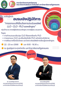 • เมื่อวันที่ 22-23 พฤษภาคม พ.ศ. 2568 รศ.ดร.สันติรัฐ นันสะอาง และผม ได้รับโอกาสให้เป็นวิทยากรโครงการอบรม การออกแบบความเชื่อมโยงการประเมินผลลัพธ์ LLO-CLO-PLOs ของหลักสูตร สาขาวิชาวิทยาศาสตร์สุขภาพ คณะวิทยาศาสตร์และเทคโนโลยี มหาวิทยาลัยราชภัฏสกลนคร จังหวัดสกลนคร